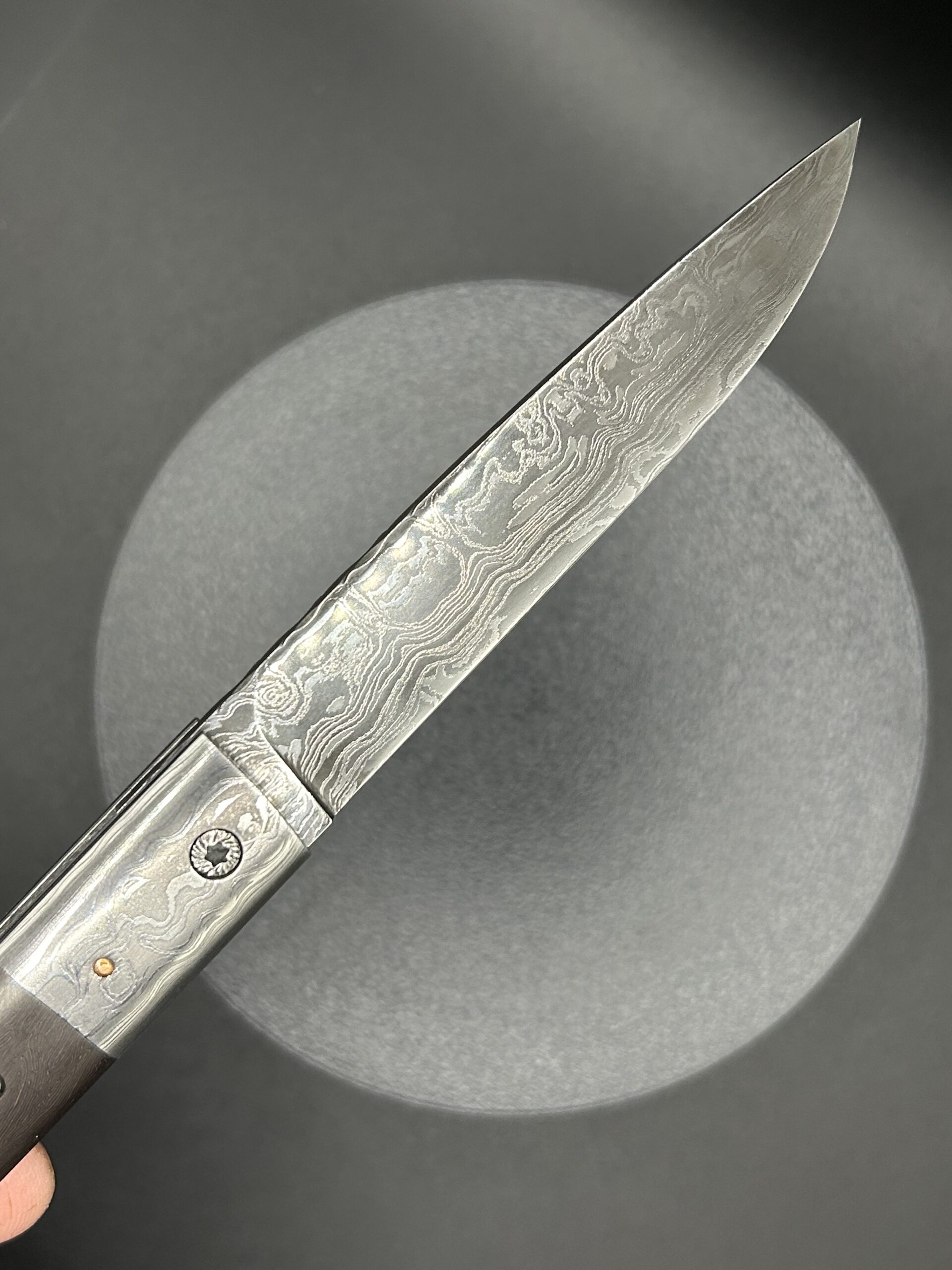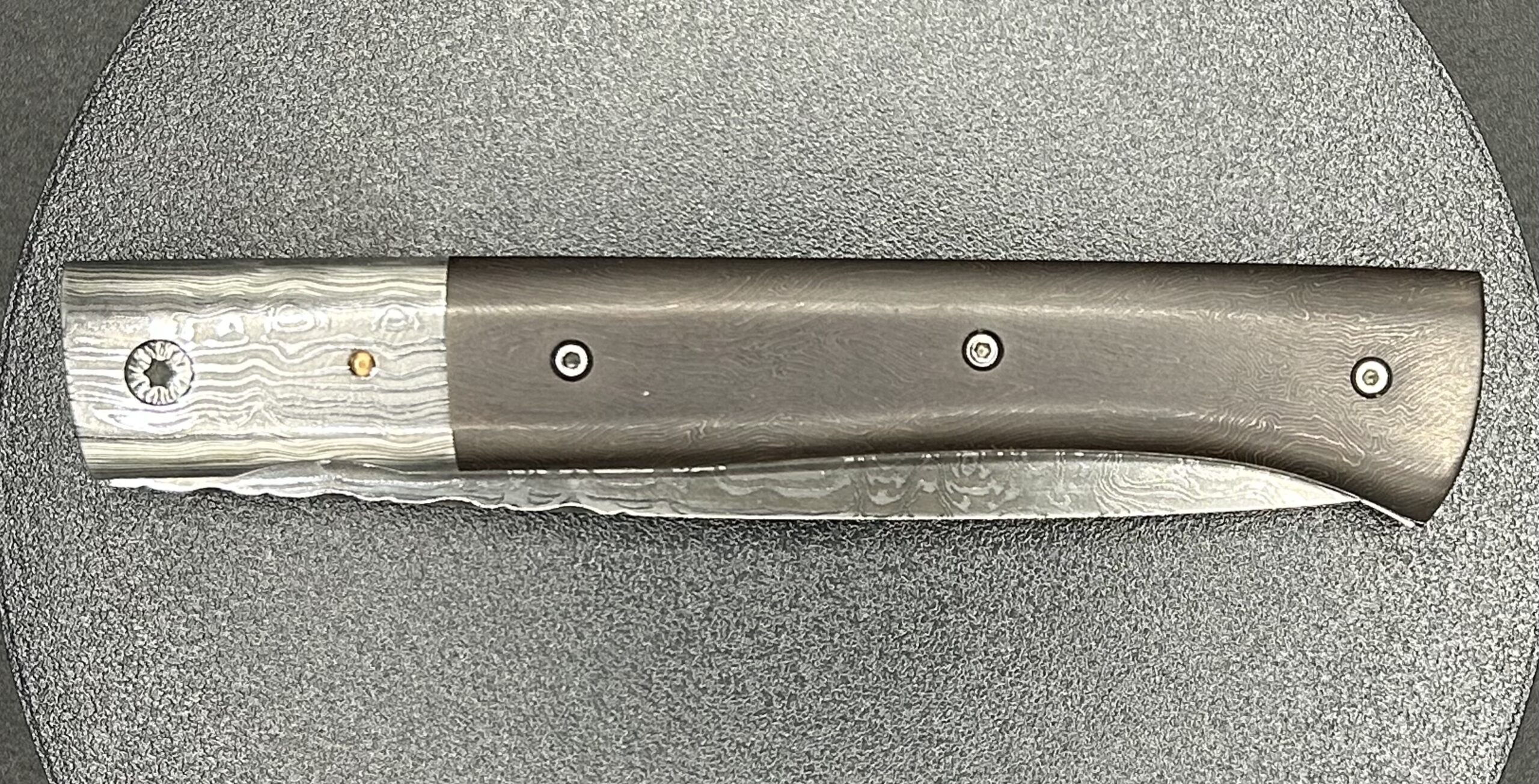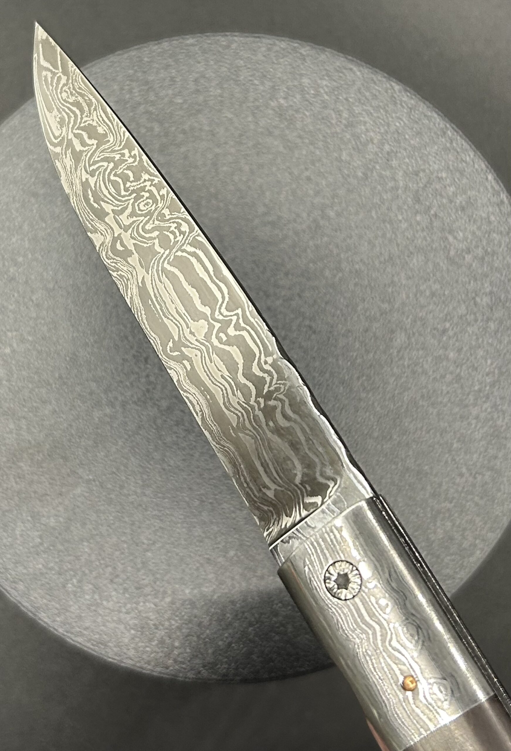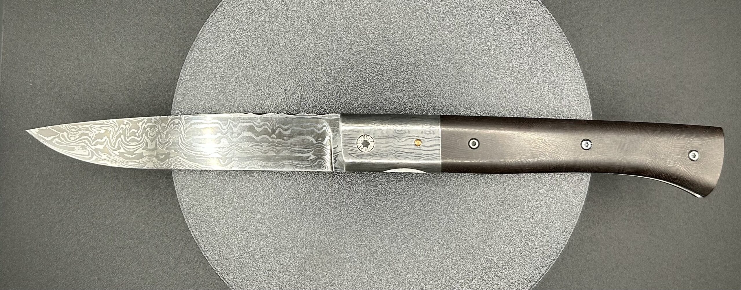 Modèle Le Géo, lame en damas 250 couches (acier 90mcv8/15n20)